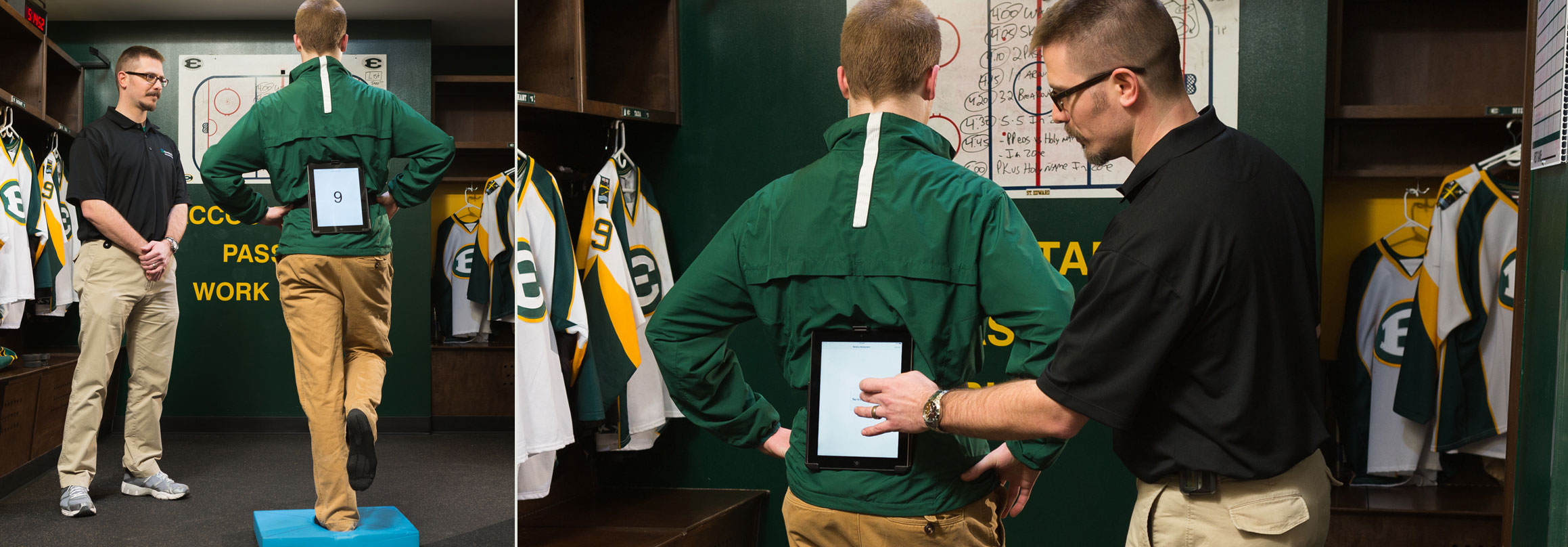 Even before the season is under way, Cruickshank gets a jump on managing potential injuries. It begins with using iPad and the app to take baseline measurements of athletes in normal states. When a possible concussion occurs during a practice or game, he examines the athlete and then takes him to the locker room for a postinjury retest. By comparing those results with the baseline, Cruickshank can easily spot a drop in performance that might indicate concussion.
