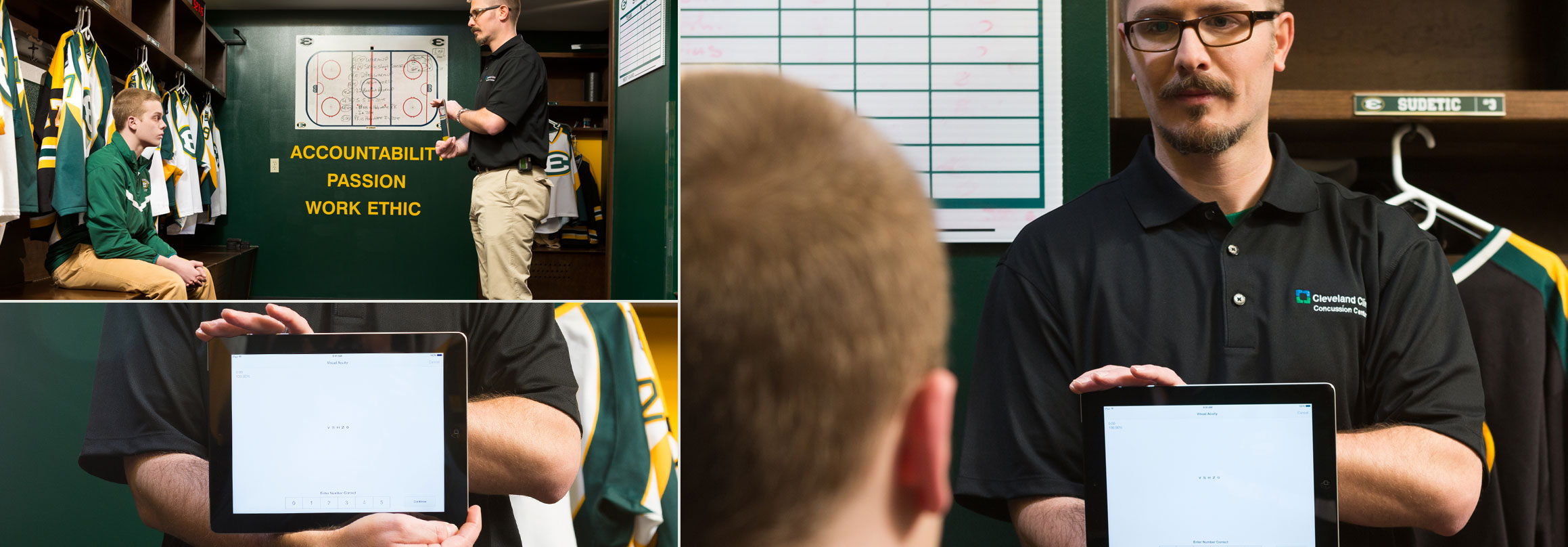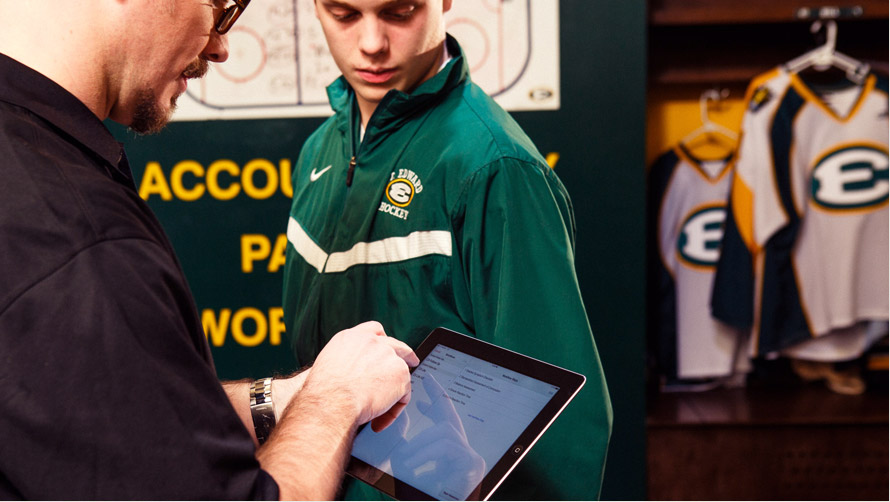 There is no typical recovery from concussion. And it’s not always clear when a full recovery has occurred. So as injured athletes progress, trainers like Cruickshank are with them every step of the way, monitoring their performance with C3 Logix on iPad. Typically, he tests them every five to six days. Because all the data collected on iPad is stored by the app, Cruickshank can share a complete picture of the athletes’ progress with doctors, parents, and coaches. That makes it much easier to judge when it’s safe for an athlete to return to action. St. Edward hockey coach Troy Gray says that seeing the persuasive test data is making his athletes more likely to cooperate with treatment and requested breaks from play.