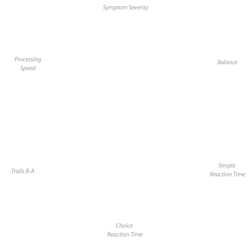 A concussion isn’t like a broken arm. It doesn’t show up in an X-ray or even an MRI. So to accurately monitor the injury, you need to visualize its effect on a person’s cognitive and motor performance. The C3 Logix app uses a hexagon-shaped graph to represent the multiple symptoms associated with concussion. The athlete's normal level of function is shown on the perimeter, with postinjury results inside. During recovery, the inner graph moves out toward the perimeter.